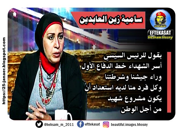 الكاتبة الصحفية سامية زين العابدين، أرملة العميد عادل رجائي أسر الشهداء خط الدفاع الأول وراء جيشنا وشرطتنا وكل فرد منا لديه استعداد أن يكون مشروع شهيد من أجل الوطن