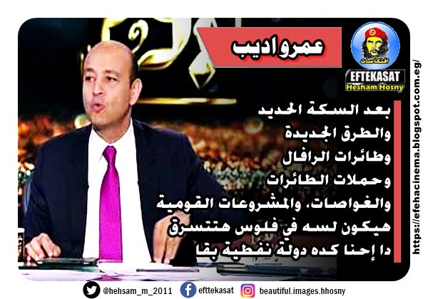 الممثل محمد علىعمرو اديبعمرو اديب بعد السكة الحديد والطرق الجديدة وطائرات الرافال وحملات الطائرات والغواصات، والمشروعات القومية هيكون لسه في فلوس هتتسرق دا إحنا كده دولة نفطية بقا