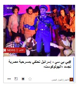 -=- #بي بي سي - إسرائيل تحتفي بمسرحية مصرية تجسد -الهولوكوست-