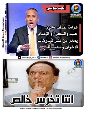 أكثر من كوميكس ..أحمد موسى غرامة نصف مليون جنيه والسجن أو الإعدام لمن ينشر فيدوهات الإخوان ومحمد علي