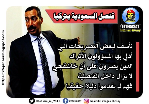 قنصل السعودية بتركيا محمد العتيبي -- نأسف لبعض التصريحات التي أدلى بها المسؤولون الأتراك الذين يصرون على أن خاشقجي لا يزال داخل القنصلية فهم لم يقدموا دليلا حقيقيا