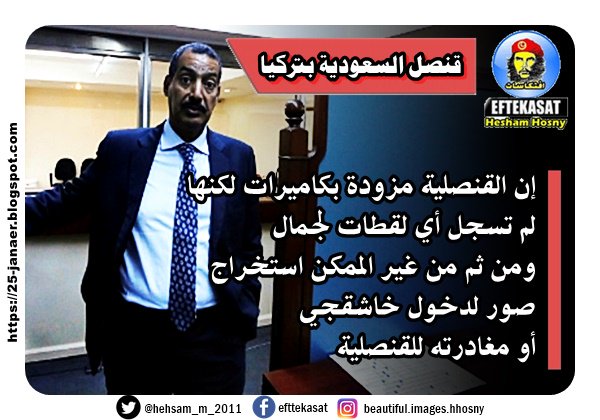 قنصل السعودية بتركيا محمد العتيبي -- إن القنصلية مزودة بكاميرات لكنها لم تسجل أي لقطات لجمال ومن ثم من غير الممكن استخراج صور لدخول خاشقجي أو مغادرته للقنصلية