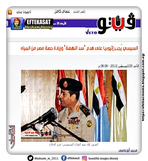 الصحافة المصرية تهييس على الشعب المصرى الاحد/25/اغسطس/2013 -=- السيسى يجبر اثيوبيا على هدم سد النهضة وزيادة حصة مصر من المياة
