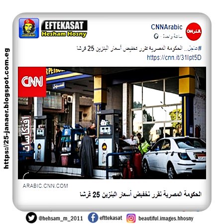 السى ان ان الحكومة المصرية تقرر تخفيض أسعار البنزين 25 قرشا