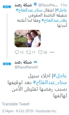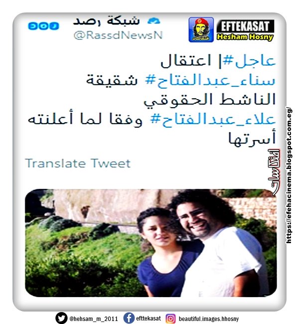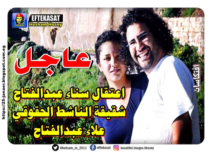 اعتقال سناء عبدالفتاح شقيقة الناشط الحقوقي علاء عبدالفتاح وفقا لما أعلنته أسرتها