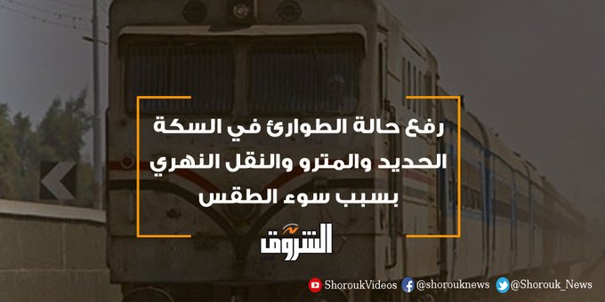 رفع حالة الطوارئ في السكة الحديد والمترو والنقل النهري بسبب سوء الطقس