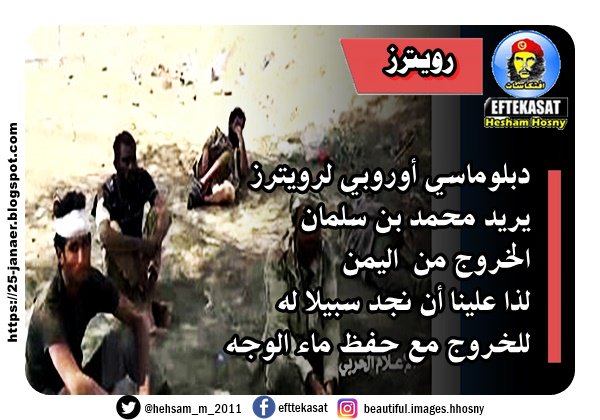 رويترز ----- دبلوماسي أوروبي لرويترز يريد محمد بن سلمان الخروج من اليمن لذا علينا أن نجد سبيلا له للخروج مع حفظ ماء الوجه