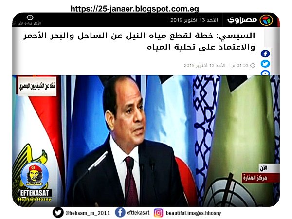 السيسي: خطة لقطع مياه النيل عن الساحل والبحر الأحمر والاعتماد على تحلية المياه
