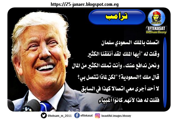 ترامب --- اتصلت بالملك السعودي سلمان وقلت له "أيها الملك لقد أنفقنا الكثير ونحن ندافع عنك، وأنت تملك الكثير من المال قال ملك السعودية "لكن لماذا تتصل بي؟ لا أحد أجرى معي اتصالا كهذا في السابق فقلت له هذا لأنهم كانوا أغبياء