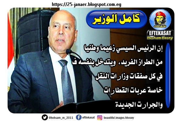 كامل الوزير: إن السيسي زعيما وطنيا من الطراز الفريد، ويتدخل بنفسه في كل صفقات وزارات النقل خاصة عربات القطارات والجرارت الجديدة