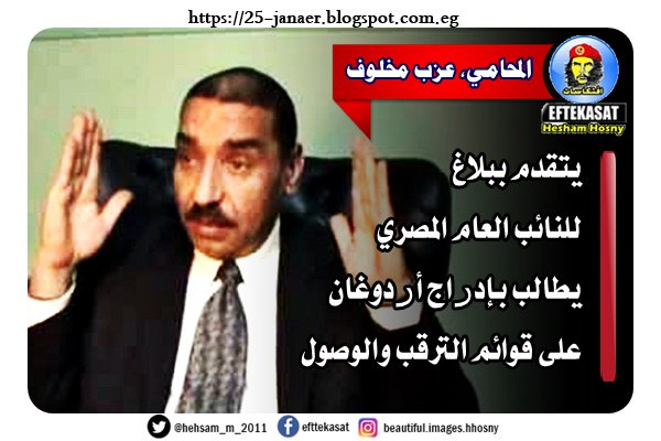 المحامي، عزب مخلوف يتقدم ببلاغ للنائب العام المصري يطالب بإدراج أردوغان على قوائم الترقب والوصول