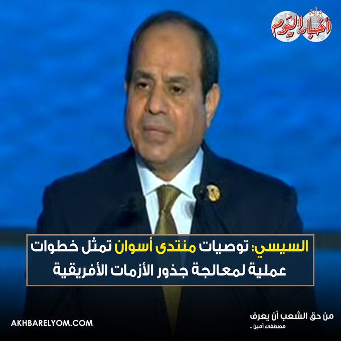 السيسي: توصيات #منتدى_أسوان تمثل خطوات عملية لمعالجة جذور الأزمات الأفريقية