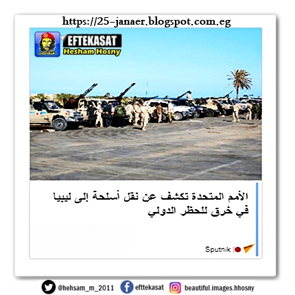 الأمم المتحدة تكشف عن نقل أسلحة إلى ليبيا في خرق للحظر الدولي جددت الأمم المتحدة اتهامها لعدة شركات ودول بخرق الحظر المعلن في 2011 من خلال تسليم أسلحة أو إرسال مقاتلين إلى الجانبين المتناحرين في ليبيا.