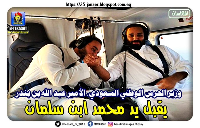 وزير الحرس الوطني السعودي الأمير عبد الله بن بندر يقبل يد محمد ابن سلمان