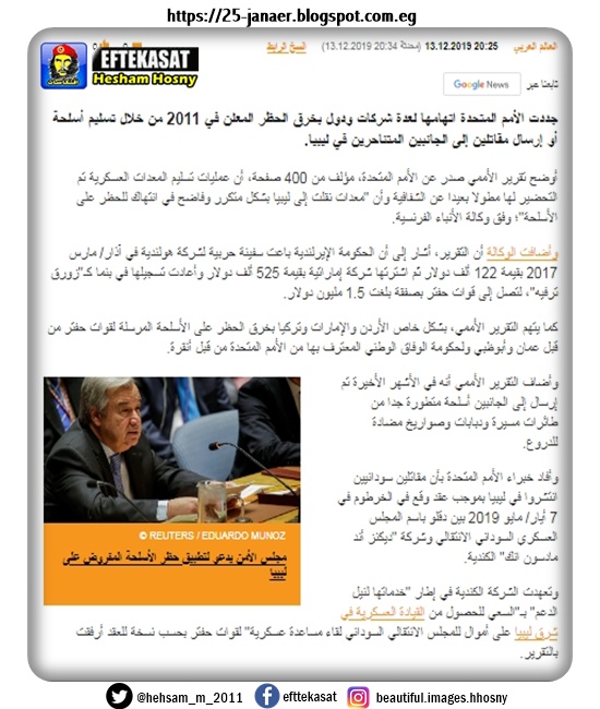 تقرير اممى أفاد خبراء الأمم المتحدة بأن مقاتلين سودانيين انتشروا في ليبيا بموجب عقد وقع في الخرطوم في 2019 بين حميدتى باسم المجلس العسكري السوداني الانتقالي وشركة "ديكنز أند مادسون انك" الكندية arabic.sputniknews.com/arab_world/201…