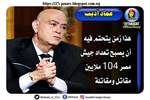 عماد الدين اديب هذا زمن يتحتم فيه أن يصبح تعداد جيش مصر 104 ملايين مقاتل ومقاتلة