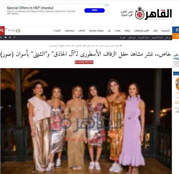 تأكيداً لانفراد “القاهرة24″، بكشف تفاصيل حفل الزفاف الذى أقيم بمدينة أسوان، والذى أثار الشكوك بعد نشر شائعات كون الحفل يخص رجل الأعمال أحمد أبو هشيمة، إلا أنه بتحقيق الأمر تبين أنه يخص رجال أعمال آخرين غير أبو هشيمة.