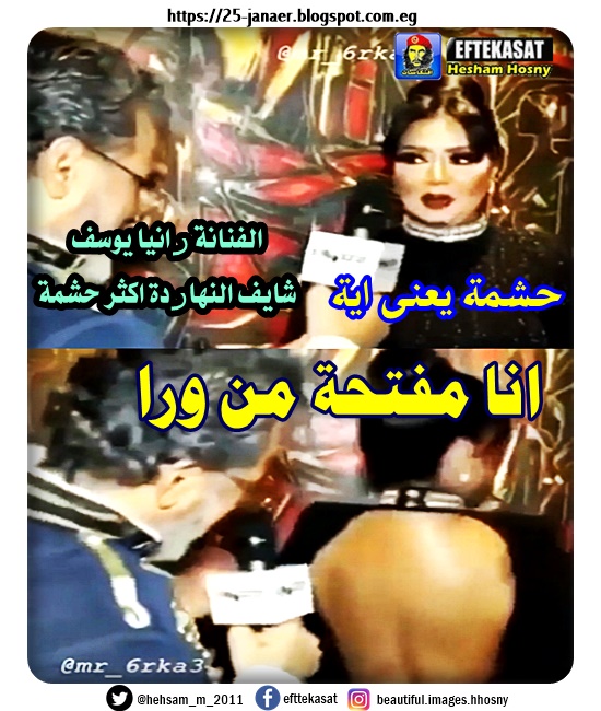 المذيع : الفنانة رانيا يوسف شايف النهاردة اكثر حشمة .. رانيا يوسف = حشمة يعنى اية انا مفتحة من ورا