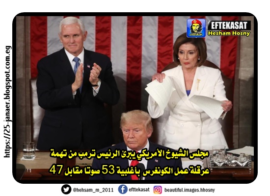 مجلس الشيوخ الأمريكي يبرئ الرئيس ترمب من تهمة عرقلة عمل الكونغرس بأغلبية 53 صوتا مقابل 47