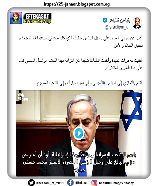 وتُعيد تصريحات نتنياهو وباراك إلى الأذهان ما قاله وزير التجارة والصناعة الإسرائيلي، بنيامين بن إليعازر، عن مبارك، في مايو 2010، حينما وصفه بأنه "كنز استراتيجي بالنسبة إلى (إسرائيل)"، وذلك خلال حديثه لإذاعة الجيش الإسرائيلي.