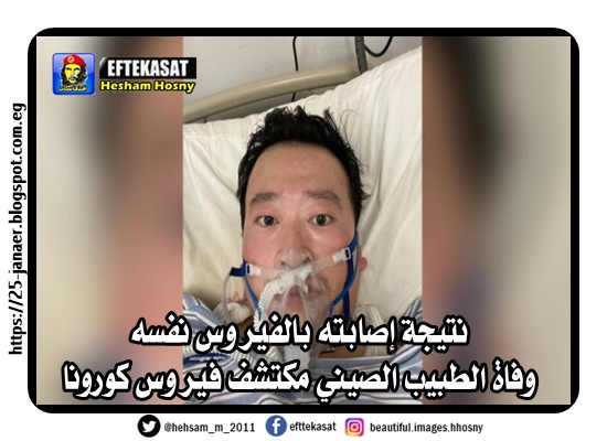 نتيجة إصابته بالفيروس نفسه وفاة الطبيب الصيني مكتشف فيروس كورونا