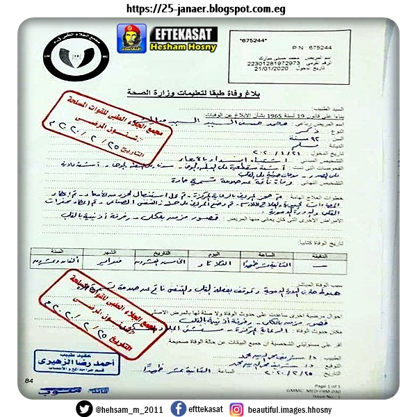 صورة من مستند رسمى لبلاغ وفاة حسنى مبارك