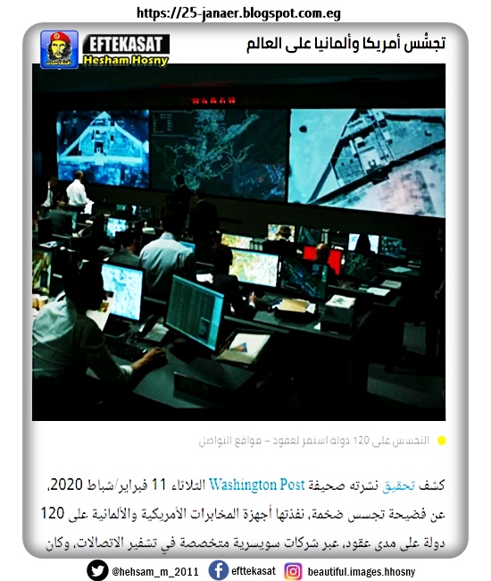 تجسُّس أمريكا وألمانيا على العالم فضيحة تجسس ضخمة، نفذتها أجهزة المخابرات الأمريكية والألمانية على 120 دولة على مدى عقود، عبر شركات سويسرية متخصصة في تشفير الاتصالات، وكان من بين الذين تم التجسس عليهم الرئيس المصري الأسبق أنور السادات.