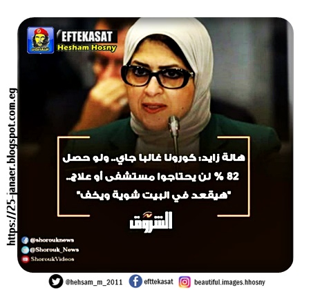 وزيرة الصحة المصرية لو حصل وكورونا جة مصر ح يبقى 82% لن يحتاجوا مستشفى او علاج " هيقعد فى البيت شوية ويخف "