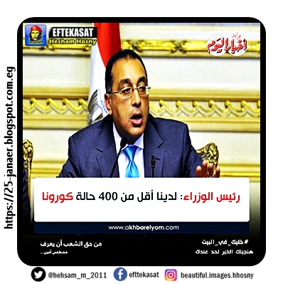 عاجل| #رئيس_الوزراء: لدينا أقل من ٤٠٠ حالة #كورونا