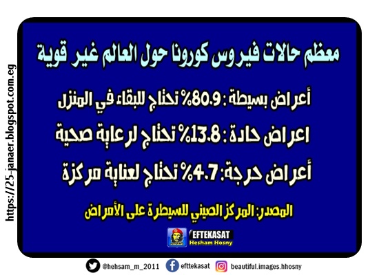 - أعراض بسيطة : 80.9% تحتاج للبقاء في المنزل