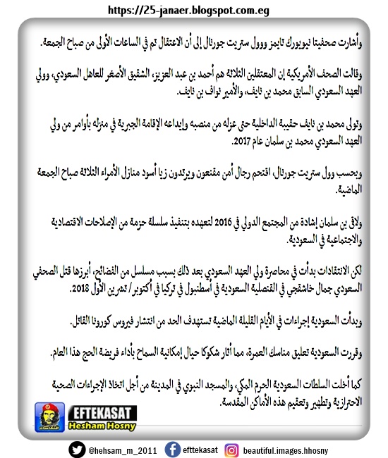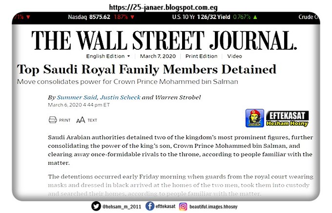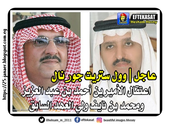 خبر وول ستريت جورنال عن اعتقال السلطات #السعودية الأميرين #احمد_بن_عبدالعزيز و #محمد_بن_نايف بتهمة "الخيانة" حسب الصحيفة