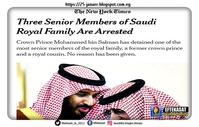 الاعتقالات لم تطل فقط الامير #أحمد_بن_عبدالعزيز و الامير #محمد_بن_نايف وإنما طالت مايزيد عن ٢٠ أمير سعودي ..تحت الأقامة والاعتقال.. وحديث عن حركة استباقية تخص تسلم #محمد_بن_سلمان الحكم من أبيه.