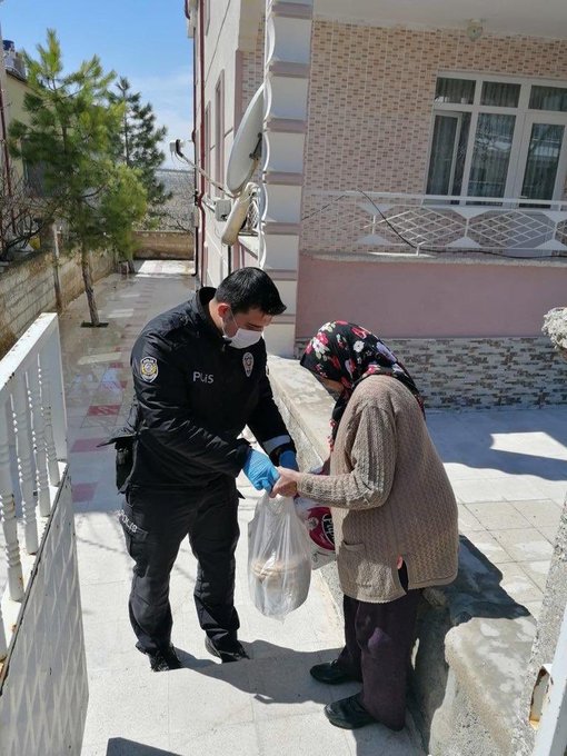 ونشرت وزارة الداخلية التركية على حسابها الرسمي في “تويتر”، اليوم الأحد، صورا لعناصر من الشرطة والجندرما التركية تقوم بإيصال المساعدات الطبية والعلاجية للمسنين وتسليمها لهم في منازلهم.