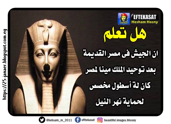 هل تعلم ان الجيش فى مصر القديمة بعد توحيد الملك مينا لمصر كان لة أسطول مخصص لحماية نهر النيل
