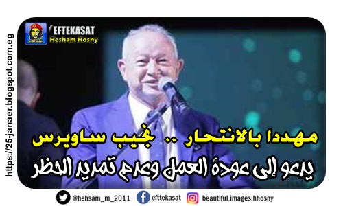 مهددا بالانتحار .. نجيب ساويرس يدعو إلى عودة العمل وعدم تمديد الحظر