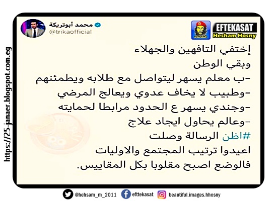 مدونة اخبارية تهتم بالتوثيق لثورة 25 يناير.الحقيقة.مازلت اسعى لنقلها كاملة بلا نقصان .اخطئ لكنى منحاز لها .لايعنينى سلفى ولا مسلم ولا اخوان يعنينى الانسان،