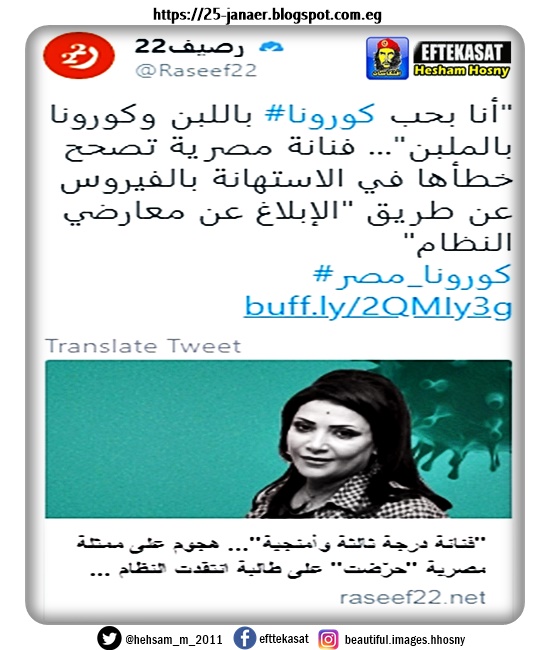 "أنا بحب #كورونا باللبن وكورونا بالملبن"... فنانة مصرية تصحح خطأها في الاستهانة بالفيروس عن طريق "الإبلاغ عن معارضي النظام" #كورونا_مصر