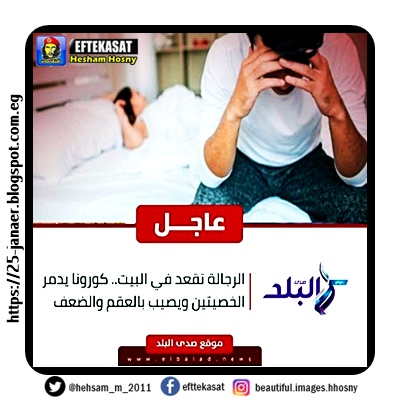 صدى البلد صحافة الضياع : الرجالة تقعد في البيت.. كورونا يدمر الخصيتين ويصيب بالعقم والضعف الجنسى .. تفاصيل