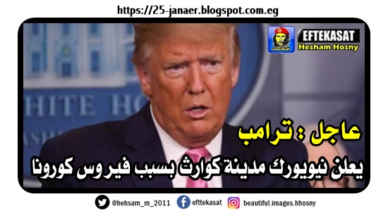 عاجل : ترامب يعلن نيويورك مدينة كوارث بسبب فيروس كورونا