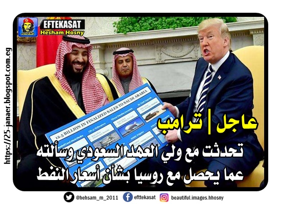 عاجل | ترامب: تحدثت مع ولي العهد السعودي وسألته عما يحصل مع روسيا بشأن أسعار النفط