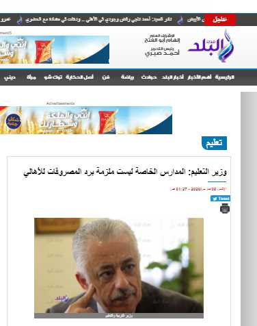 وزير التعليم المدارس الخاصة ليست ملزمة برد المصروفات للأهالي