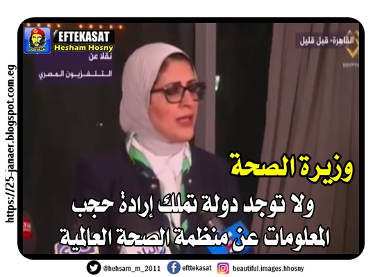 وزيرة الصحة المصرية ولا توجد دولة تملك إرادة حجب المعلومات عن منظمة الصحة العالمية