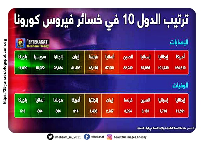 بفارق ملفت بين كل دولة وأخرى.. تعرّف الدول العشرة الأولى في معدّلات الوفيات والإصابات بفيروس كورونا