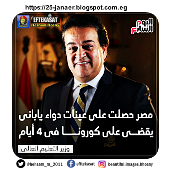 بس الغريب مش قال الكلام دا وزيرة الصحة لأ اللى قالة وزير التعليم العالى -=- #اليوم_السابع | وزير التعليم العالى: مصر حصلت على عينات دواء يابانى يقضى على #كورونا فى 4 أيام..