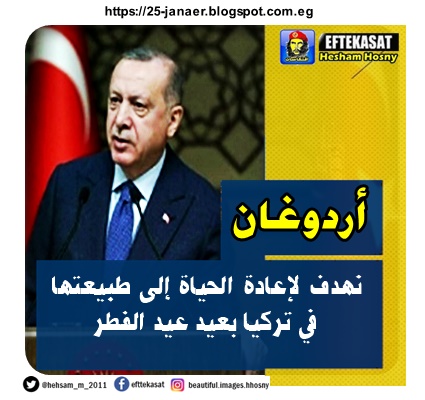 أردوغان نهدف لإعادة الحياة إلى طبيعتها في تركيا بعيد عيد الفطر