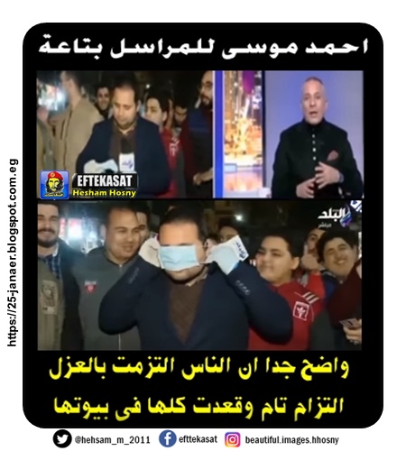 يعنى اية هطل اعلامى بالصوت و الصورة رغم ان الصورة على الهوا والناس فى الشارع ورا المراسل لكن احمد موسى للمراسل بتاعة واضح جدا ان الناس التزمت بالعزل