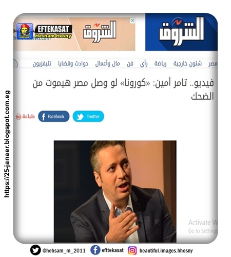 تامر امين يؤكد «كورونا» لو وصل مصر هيموت من الضحك