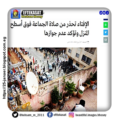 الشيخ محمد عبد السميع، إن التجمع أعلى أسطح المنازل للصلاة جماعة لا يجوز، مشيرا إلى أن ذلك يعرض حياة الناس للخطر، فربما كان أحدهم يحمل الفيروس ولكنه لا يشعر به، وهو ما أكدته تقارير خبراء الصحة.