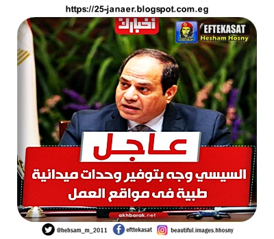 السيسي يوجه بتطبيق أعلى درجات الإجراءات الوقائية للعاملين بالمواقع من خلال تواجد عيادة طبية