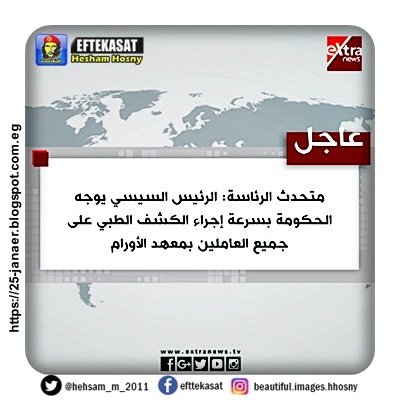 متحدث الرئاسة: السيسي يوجه الحكومة بسرعة إجراء الكشف الطبي على جميع العاملين بمعهد الأورام